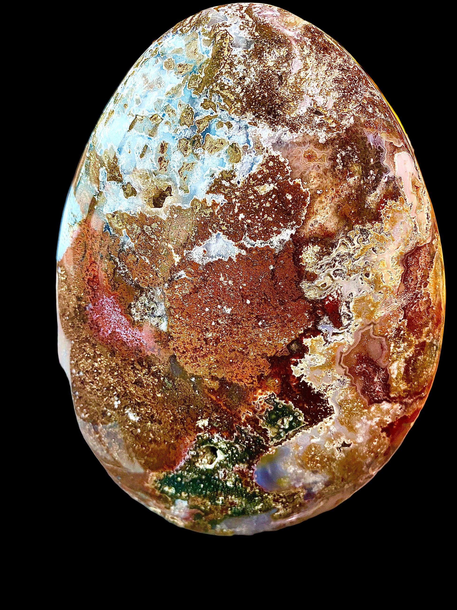 Découvrez un jaspe océanique poli de 1 kg, directement issu des terres riches et colorées de Madagascar. Reconnu pour ses motifs uniques en forme de vagues, de cercles et de profondeurs océaniques, le jaspe océanique est l’une des pierres les plus appréciées pour ses propriétés énergétiques apaisantes et son esthétique exceptionnelle.